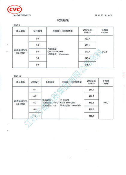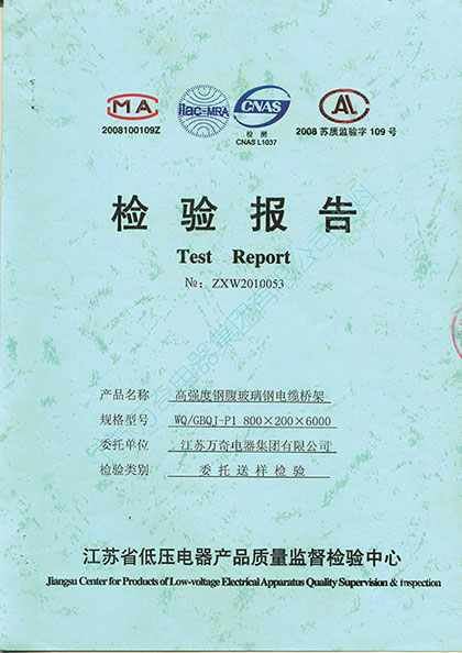 2、 復合橋架采用的是手工制作,效率低、成本高,造價是一般產(chǎn)品的2-3倍,由于樹脂是復合在鋼板上,粘結技術要求很高,一旦結合力不好就存在剝落的現(xiàn)象。而且由于玻璃鋼與鋼材的熱膨脹系數(shù)不同,使用3~5年后外表的有機樹脂與鋼板產(chǎn)生應力性點分離,使鋼板產(chǎn)生集中性點腐蝕而失去強度。經(jīng)使用后的復合橋架由于復合材料難以分離,不但鋼板不能回收,廢棄物也不易處理,造成嚴重的環(huán)境污染,如采用復合橋架今后必將會給用戶帶來昂貴的固體垃圾處理費用。而高強度鋼腹玻璃鋼橋架采用拼裝工藝解決了拉擠玻璃鋼橋架縱、橫向強度差異,以及易撕裂的問題,充分利用了玻璃鋼材料重量輕、耐腐蝕、抗拉、抗彎、絕緣和透波性好的優(yōu)點。從材料力學的角度對橋架結構進行創(chuàng)造性的設計,用空腹管狀結構代替平板結構、用模塊化拼裝代替一次性拉擠成型、用型材的橫向受力轉為縱向受力,該產(chǎn)品經(jīng)國家玻璃鋼制品質(zhì)量監(jiān)督檢驗中心檢測,彎曲強度達到515MPa,拉伸強度達到442 MPa;經(jīng)江蘇低壓電器產(chǎn)品質(zhì)量監(jiān)督檢驗中心荷載試驗,規(guī)格800*200的鋼腹玻璃鋼橋架在支吊跨距6米時,承載405kg(約4050N),試驗均布荷載675N/m,撓度值為24mm,安全荷載為450N/m,超過了鋼制電纜橋架設計規(guī)范荷載等級中D級(最高級)413N/m的要求,其荷載能力是一次性拉擠玻璃鋼橋架的5倍以上;規(guī)格600*150的鋼腹玻璃鋼橋架在支吊跨距6米時,承載310kg(約3100N),試驗均布荷載516N/m,撓度值為36mm(未產(chǎn)生永久變形),安全荷載為344N/m;規(guī)格300*100的鋼腹玻璃鋼橋架在支吊跨距6米時,承載100kg(約1000N),試驗均布荷載166N/m,撓度值為34mm(未產(chǎn)生永久變形),安全荷載為110N/m。(詳見檢驗報告)高強度鋼腹玻璃鋼橋架與同類產(chǎn)品相比具有重量更輕、強度更高、性能更好的優(yōu)點;克服了全質(zhì)玻璃鋼橋架在剛性強度和承載力方面存在的弱點,同時解決了復合橋架易剝落,熱膨脹系數(shù)不等造成的表面層分離、鋼板生銹的問題。